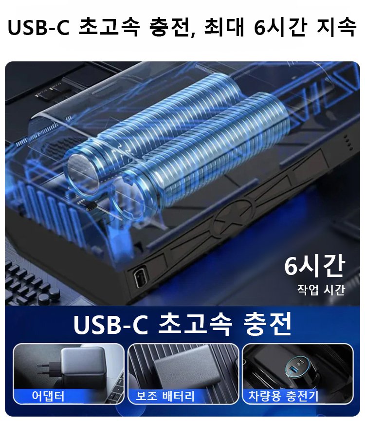 초대용량 리튬 배터리를 탑재하여 단 한 번의 충전으로 6시간 연속 제설 작업이 가능합니다!