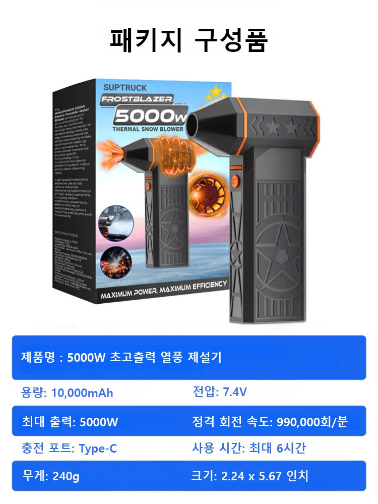 한국의 혹한 지역에 맞춰 특별 개발, 영하 45℃의 강추위 속에서도 눈을 손쉽게 녹입니다!